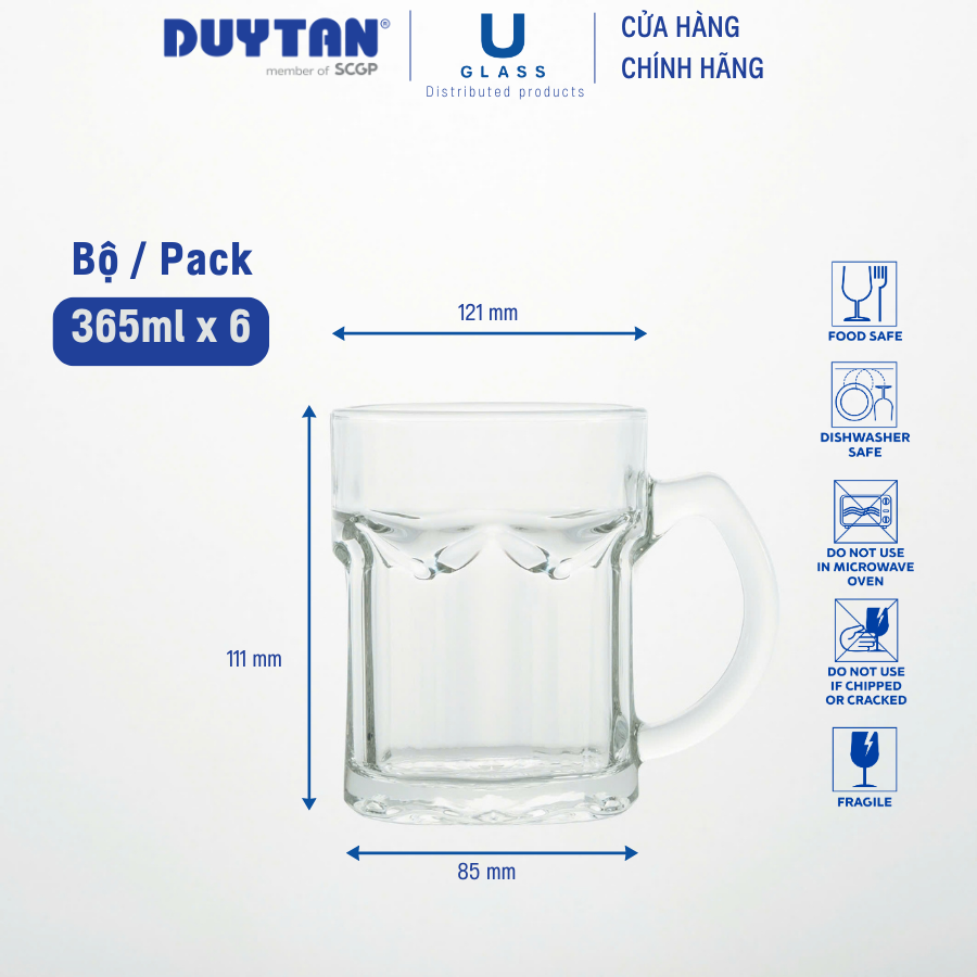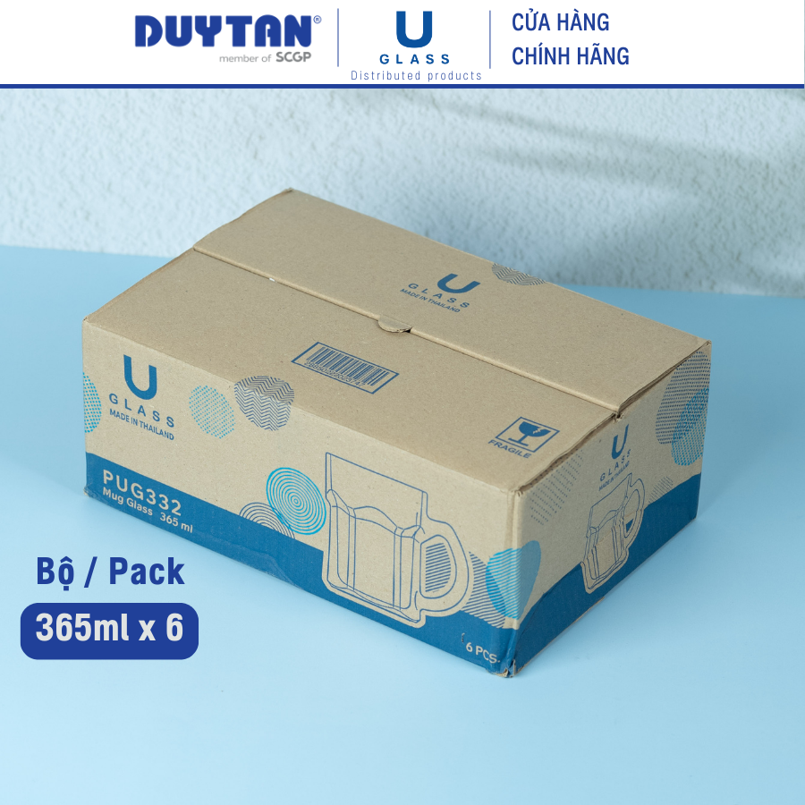Tên sản phẩm: Bộ 6 Ly cốc thủy tinh U Glass 365ml kiểu quai - PUG332, thủy tinh cao cấp