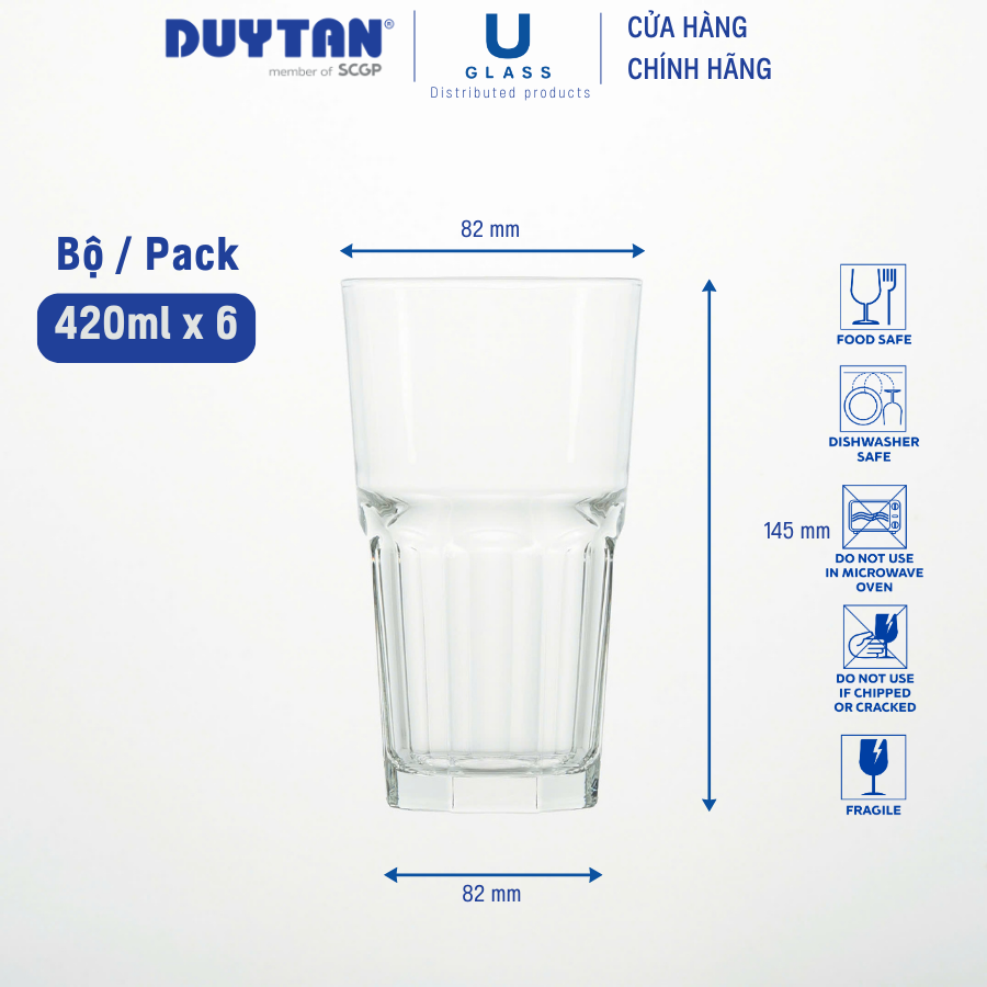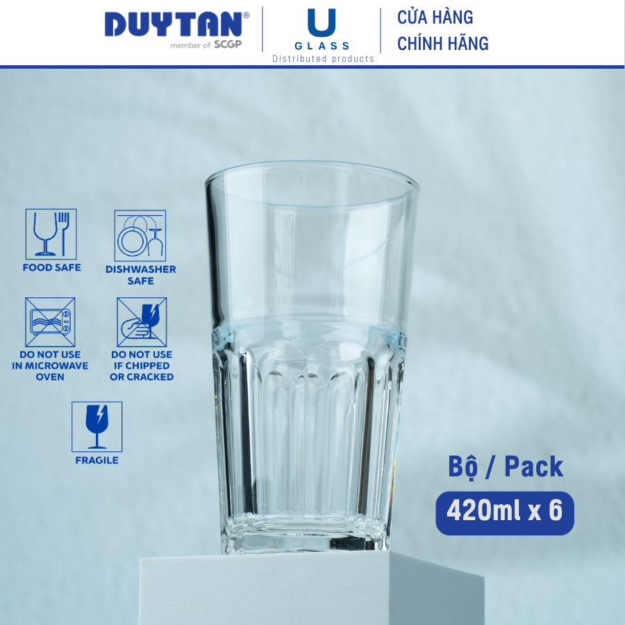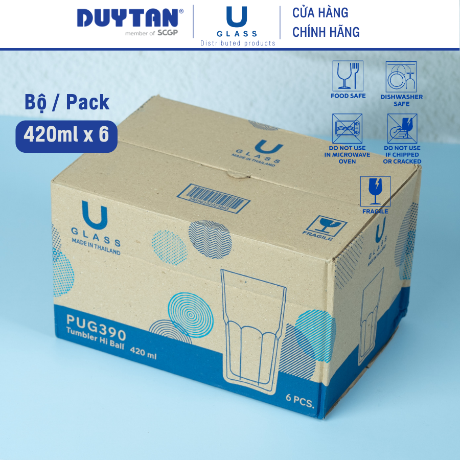 Tên sản phẩm: Bộ 6 Ly cốc thủy tinh U Glass 420ml kiểu cao - PUG390, thủy tinh cao cấp