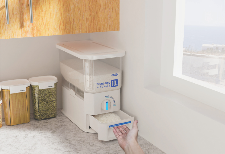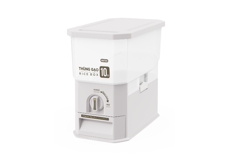 Thùng gạo Clear 10kg MATSU – Nhựa PP an toàn, chống ẩm mốc, lấy gạo tiện lợi